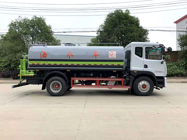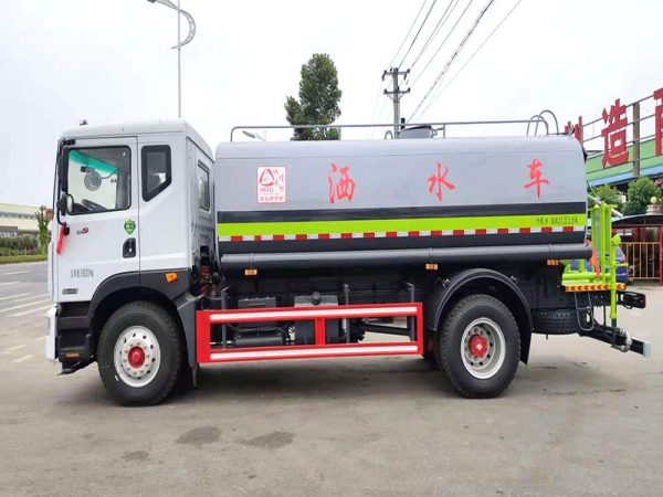 【性能簡介】前沖(噴)后灑,帶側噴花灑,罐體后帶工作平臺。平臺上安裝綠化灑水高炮,炮可全方位360°旋轉,炮噴射形狀可連續調成直沖狀、大雨、中雨、小雨、毛毛雨,平臺邊安裝灑水砣和低位花灑,罐體右上側安裝高位花灑。配備自吸自排優質灑水泵,吸程≥7m,灑水寬度15-21m,灑水炮射程20-35m,帶消防接口、濾網、自流閥,罐體管道和防護網采用鍍鋅材料,罐體采用碳鋼板,內有隔板,罐體機器人自動焊接。采用底盤自帶原裝取力器,上裝面漆為烤漆。帶灑水警示音樂和小警燈,帶水位計。緊急時可抗旱和消防運水。