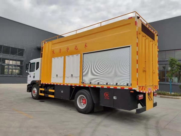 吸污凈化車將化糞池的污物分類處理,既不造成二次污染,也將大糞榨成有機(jī)肥,對(duì)污物進(jìn)行了充分的利用,最后排放出來(lái)達(dá)標(biāo)的污水。吸污凈化車標(biāo)配小型沖洗泵,可對(duì)吸污凈化設(shè)備進(jìn)行沖洗,同時(shí)可根據(jù)客戶需求,加裝管道疏通功能,可選裝進(jìn)口16兆帕高壓泵或者國(guó)產(chǎn)21兆帕高壓泵,配2立方清洗水箱,60米高壓管。 吸污凈化車每小時(shí)可出糞餅500-800Kg,根據(jù)化糞池污物的稠密度,處理污水的速度不等,一般為8-15M3/h。