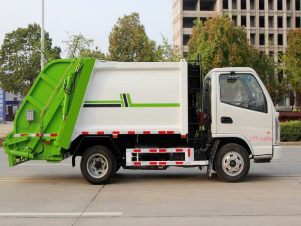 (3)油泵采用國內知名品牌安徽皖液油泵,加裝壓實閥,增加壓縮密度、提高裝載量。裝載量相當于同噸級排非壓縮垃圾的兩倍半。威森博樂多路閥,徐州全球通液壓油鋼管,多路閥處硬鏈接,整齊美觀,散熱快,工作效率高,采用**的外置油缸結構和雙向壓縮技術,通過國內國外一流品牌配件,實現壓縮比超過 1:2.5,單次循環≤20 秒,達到了垃圾收集、效率的成倍提升。