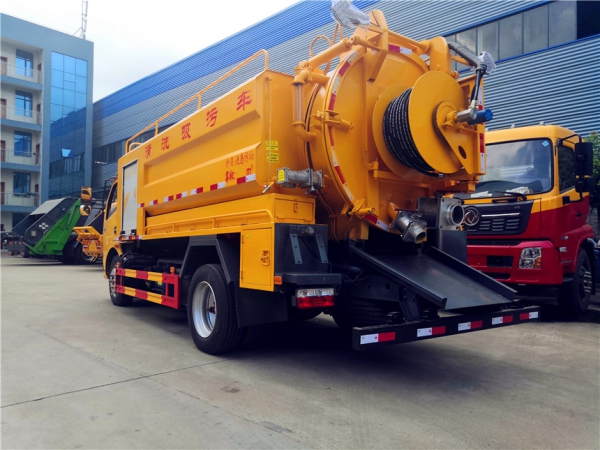 吸污部分:7方污罐,罐體6mmQ235優質碳鋼,配淄博SK-12水循環泵,8米吸污管一根,進氣管加過濾網,防溢閥加高,后蓋卡扣鎖緊,前視污亮管,后尾部加裝1個力拓牌100mm的球閥吸污口150mm排污口,罐體帶舉升功能,后門帶液壓開啟。
