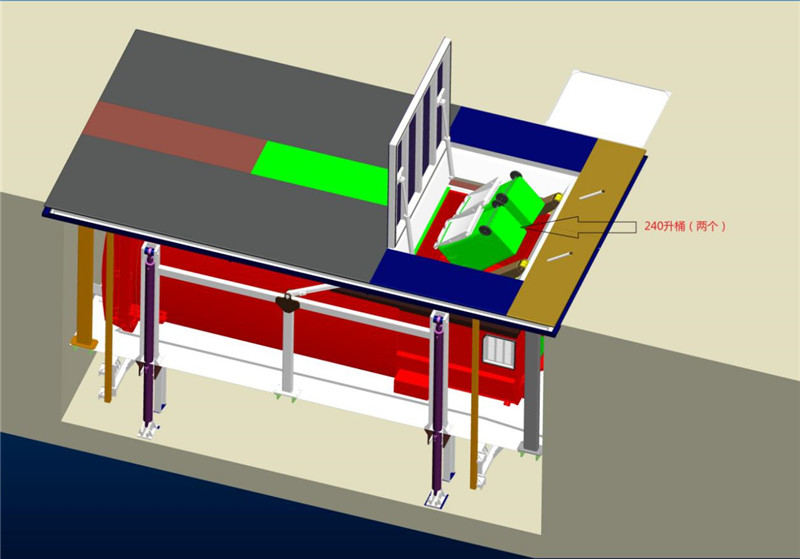 只要將地埋式垃圾箱上蓋打開,垃圾箱的推頭就會(huì)把推頭室的垃圾推到垃圾貯料倉從而達(dá)到垃圾壓縮功能。