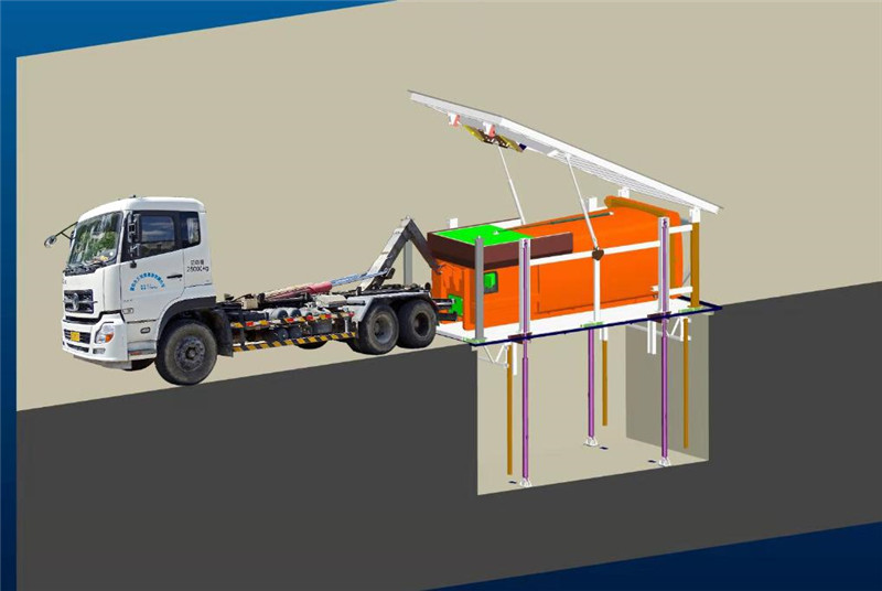 水平移動(dòng)式景觀地埋式垃圾站,也稱作地埋式垃圾壓縮機(jī)。將整個(gè)設(shè)備隱藏于地下進(jìn)行垃圾處理的一種設(shè)備,我們把垃圾轉(zhuǎn)運(yùn)站從地上搬到地下,并結(jié)合定制的氣味控制系統(tǒng)及滲濾液處理排放系統(tǒng),徹底解決了視覺和氣味的污染。