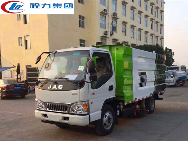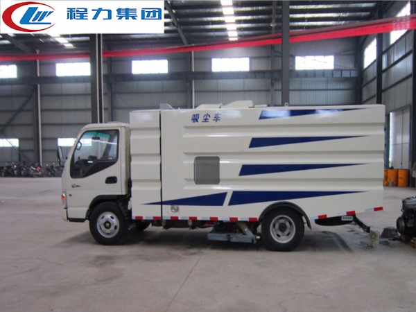 江淮吸塵車是采用型江淮國五二類原廠汽車底盤改裝,加裝副發動機、風機、清水箱、垃圾箱、中置吸盤,工作視頻探頭,自動脈沖清理功能,液壓系統、專用裝置電控系統和副車架等改裝而成。