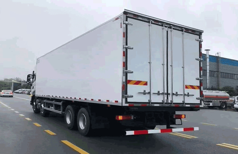 | 其他 | 隨底盤選裝僅高度不同的駕駛室,高頂駕駛室頂部氣喇叭為選裝件,駕駛室前角擾流板為選裝件,選裝單油箱或雙油箱;貨廂選裝單開門,雙開門和不開門型式;選裝其它廠家功率相當(dāng)?shù)闹评錂C(jī)組,選裝前置式,內(nèi)置式,底置式制冷機(jī)組;選裝升降尾板,尾板收起狀態(tài)時的水平長度為295mm;廂體頂部封閉,不可開啟;側(cè)防護(hù):材料Q235,螺栓連接;后下防護(hù):材質(zhì)Q235.螺栓連接,斷面尺寸120×60mm,離地高度460mm;安裝具有衛(wèi)星定位功能的行駛記錄儀;裝有ABS,ABS型號/生產(chǎn)廠家:ABS 8/東科克諾爾商用車制動系統(tǒng)(十堰)有限公司;發(fā)動機(jī)DDi11E465-60對應(yīng)油耗申報值37.1L/100km. | ||
