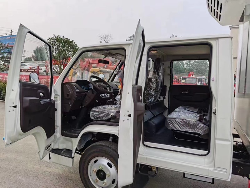 江鈴順達雙排冷藏車,整車型號:AAA5043XLCJX6,整車尺寸:5995×1980×2900,廂體尺寸:3250×1800×1800,五十鈴115馬力發(fā)動機,5檔變速箱,原廠空調,助力,ABS,油剎,軸距3360,7.00R16LT 8PR輪胎,廂體采用內外玻璃鋼、中間8CM 厚聚氨酯保溫板、底板為防滑花紋鋁板,單開側門,不銹鋼門鎖件,-15度制冷機組,其余標配。